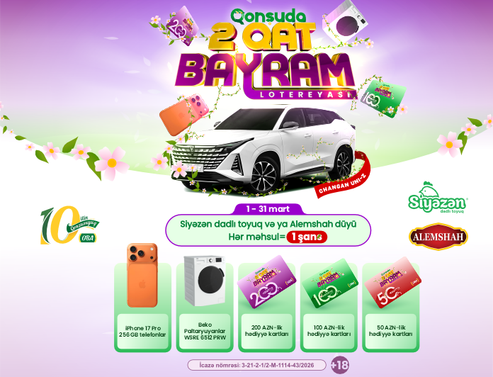 С 1 по 31 марта 2026 года купи любой продукт Siyəzən или рис Alemshah в магазинах OBA и получи шанс выиграть один из 11 ценных призов!