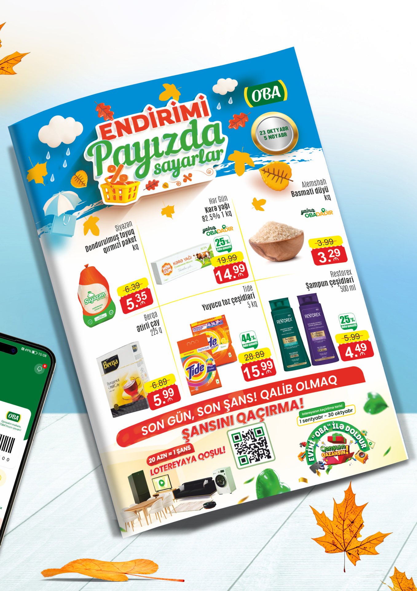 "OBA" da hər məhsulda qonşu sevgisi, hər rəfdə qənaət gizlidir 💚 Endirimi payızda sayarlar, "OBA" da taparlar!