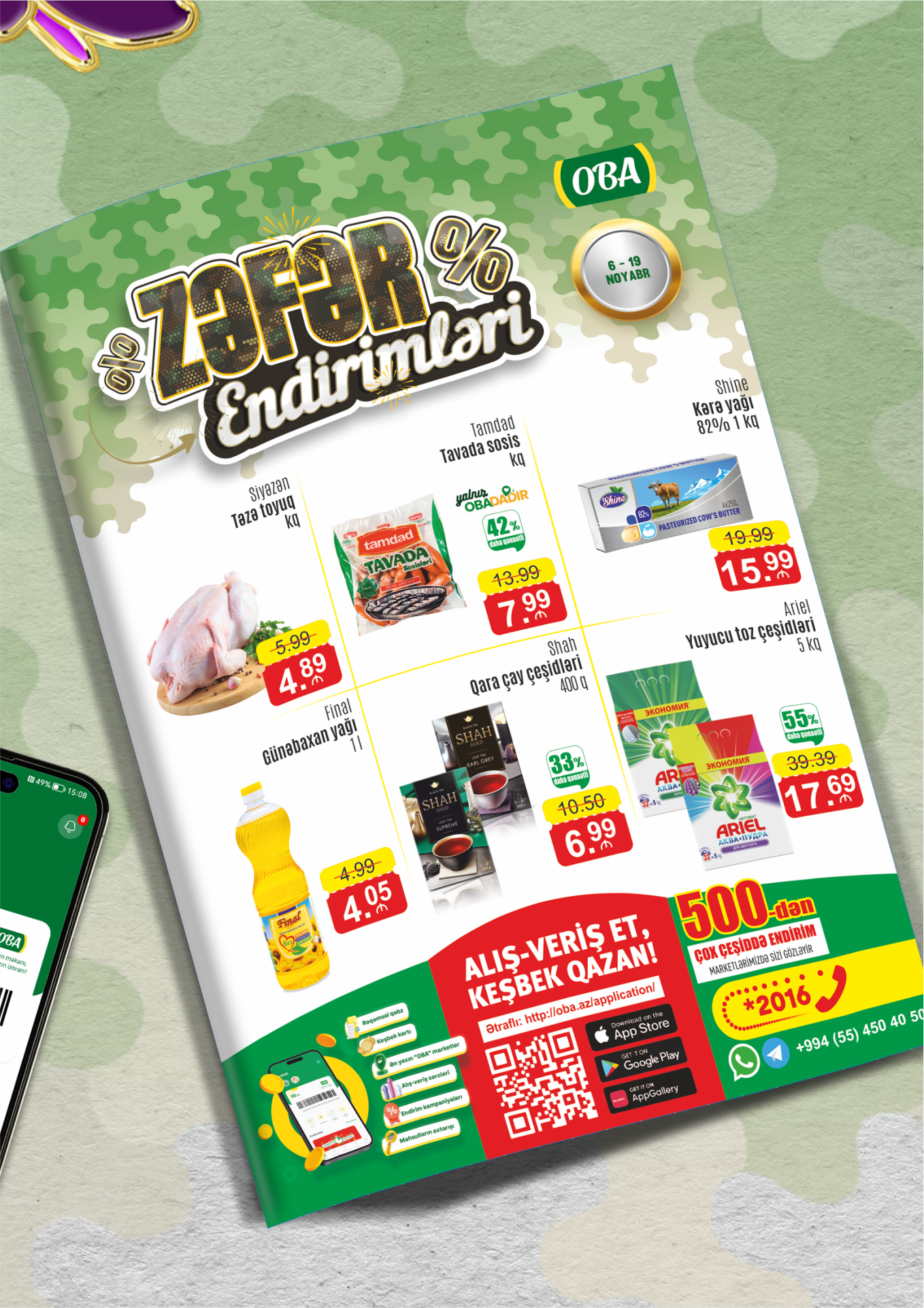 Qəlbiniz sevinclə, cibiniz endirimlə dolsun! 🤩 "OBA"nın "Zəfər Günü"nə özəl fürsətlərindən yararlanmağa tələsin!